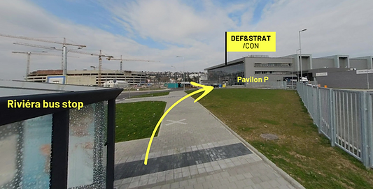 After getting off at the “Riviéra” stop, follow the path in line with Pavilion P (3 min).